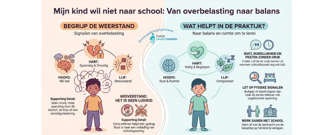 Het hoofd wil leren, maar het hart voelt spanning en het lijf staat in de stressstand. Dan wordt naar school gaan steeds zwaarder.